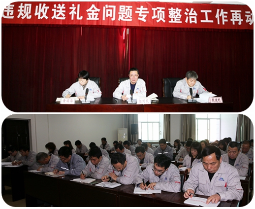 1月21日上午,公司召開集中開展違規(guī)收送禮金問題專項(xiàng)整治工作再動(dòng)員會(huì)議,貫徹落實(shí)集團(tuán)公司關(guān)于違規(guī)收送禮品禮金再動(dòng)員大會(huì)的部署要求。會(huì)議由公司黨委副書記、總經(jīng)理封建利主持,公司領(lǐng)導(dǎo)班子成員,基層各單位負(fù)責(zé)人、機(jī)關(guān)各部室負(fù)責(zé)人以及機(jī)關(guān)黨員干部50余人參加了會(huì)議。 首先,公司財(cái)務(wù)總監(jiān)黃麗華傳達(dá)了陜有色集團(tuán)集中開展違規(guī)收送禮金問題專項(xiàng)整治工作再動(dòng)員會(huì)議精神。認(rèn)真學(xué)習(xí)了集團(tuán)紀(jì)委書記魏國林傳達(dá)的省紀(jì)委監(jiān)委負(fù)責(zé)人就全省集中開展違規(guī)收送禮金專項(xiàng)整治有關(guān)問題的解答,就如何幫助黨員干部放下思想包袱,消除思想顧慮?如何解決上繳違規(guī)收受禮金過程中泄漏身份信息?如何將違規(guī)收受的禮金上繳到全省公布的統(tǒng)一專用賬戶等等進(jìn)行了詳細(xì)說明。又傳達(dá)學(xué)習(xí)了陜有色集團(tuán)黨委書記、董事長馬寶平在會(huì)上的講話精神。深化教育引導(dǎo),增強(qiáng)敬畏意識(shí)。精準(zhǔn)梳理排查,嚴(yán)肅執(zhí)紀(jì)審查。堅(jiān)守責(zé)任擔(dān)當(dāng),務(wù)求整治實(shí)效。 接著,公司黨委書記、董事長拓劉毅做了講話。美鑫公司自元月2日起在全公司范圍內(nèi)開展了領(lǐng)導(dǎo)干部違反規(guī)定收送禮金專項(xiàng)整治工作,積極行動(dòng)起來,宣傳貫徹落實(shí)會(huì)議精神,取得一定成效。這次開展再動(dòng)員會(huì),是公司黨委履行黨風(fēng)建設(shè)主體責(zé)任跟大家進(jìn)行的一次集體談話,要求大家務(wù)必嚴(yán)肅對待、認(rèn)真落實(shí)。拓劉毅從三個(gè)方面做了明確要求,一是思想認(rèn)識(shí)要到位。“要把剎住“四風(fēng)”作為鞏固黨心民心的重要途徑,對享樂主義、奢靡之風(fēng)等歪風(fēng)陋習(xí)要露頭就打,對“四風(fēng)”隱形變異新動(dòng)向要時(shí)刻防范,要深化標(biāo)本兼治,夯實(shí)治本基礎(chǔ),一體推進(jìn)不敢腐、不能腐、不想腐,做好三個(gè)堅(jiān)決防止的心態(tài)。二是工作措施要到位。落實(shí)兩個(gè)責(zé)任,加強(qiáng)制度建設(shè)。各單位、各部室要按照專項(xiàng)整治黨員干部《自查自糾情況報(bào)告》的主要內(nèi)容,全面自查自糾思想認(rèn)識(shí)上的偏差,副處級(jí)以上領(lǐng)導(dǎo)干部還要寫出個(gè)人自查自糾情況報(bào)告并作出承諾。三是表率作用要到位。領(lǐng)導(dǎo)干部發(fā)揮表率作用是黨的優(yōu)良傳統(tǒng)。一定要提高政治站位,增強(qiáng)“四個(gè)意識(shí)”、堅(jiān)定“四個(gè)自信”,做到“兩個(gè)維護(hù)”,強(qiáng)化法紀(jì)敬畏和思想自覺。正確選擇個(gè)人愛好,慎重對待朋友交往,明辨是非,重品行,時(shí)刻檢點(diǎn)自己生活的方方面面。 最后,公司黨委副書記、總經(jīng)理封建利要求全面貫徹落實(shí)本次會(huì)議精神,進(jìn)一步統(tǒng)一思想、凝聚共識(shí),傳導(dǎo)壓力、精準(zhǔn)發(fā)力,把專項(xiàng)整治工作引向深入。  |