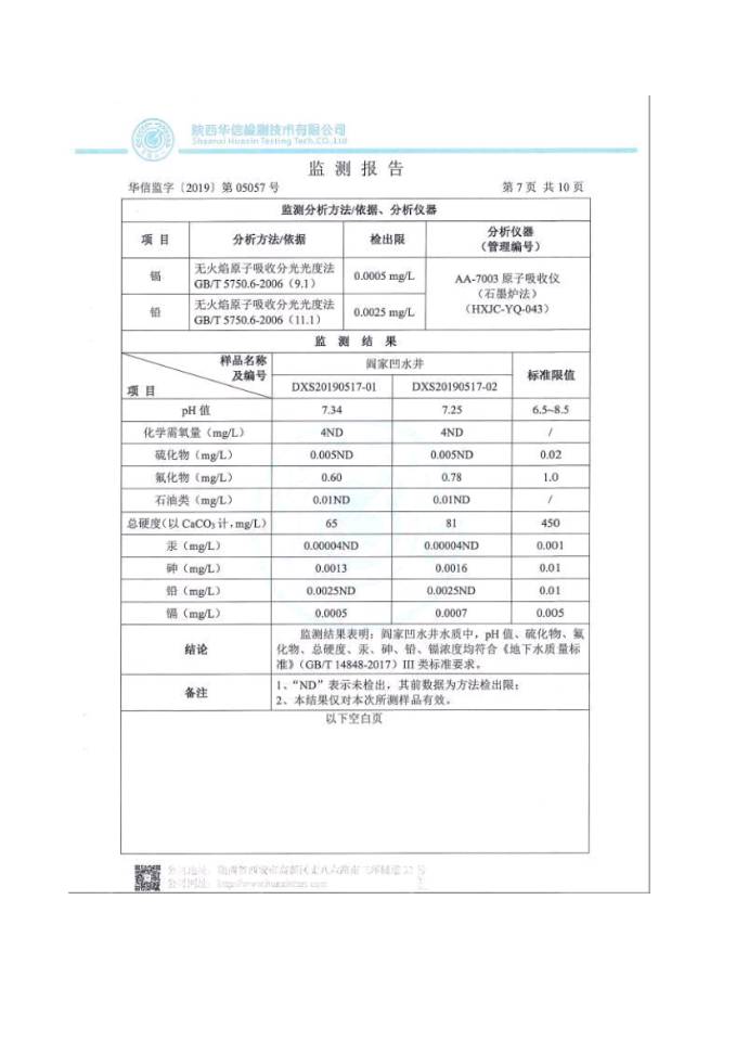 (1)監(jiān)測(cè)指標(biāo):pH值、化學(xué)需氧量、硫化物、氟化物、石油類、總硬度、總汞、總砷、總鉛、總鎘。