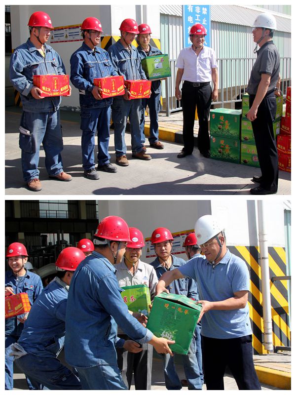 | 8月13日,秋老虎發(fā)威,銅川室外溫度仍在35℃以上。冒著高溫酷熱,陜西有色集團(tuán)工會主席魏俊英、副主席劉朝斌深入陜西美鑫公司電解、鑄造生產(chǎn)一線,開展“送清涼”活動,將集團(tuán)公司的關(guān)心關(guān)愛傳遞到戰(zhàn)高溫斗酷暑的一線職工心中。該公司黨委書記、董事長高曉兵、黨委副書記、紀(jì)委書記李書平、監(jiān)事會主席王志鋒陪同慰問。 面對緊張作業(yè)的電解工,魏俊英表達(dá)了集團(tuán)公司的親切慰問,對大家高溫下的忠于職守予以充分肯定,向在場職工發(fā)放了清涼飲料和茶葉,叮囑大家注意安全,做好防護(hù)工作。在該公司領(lǐng)導(dǎo)陪同下,魏俊英一行還深入生產(chǎn)現(xiàn)場,了解生產(chǎn)運(yùn)行情況,詳細(xì)詢問了解職工高溫勞動防護(hù)措施,叮囑企業(yè)要以人為本,關(guān)心職工健康,落實(shí)好各項(xiàng)防暑降溫和安全防護(hù)措施,確保一線員工身體健康和生產(chǎn)安全。 隨后,魏俊英一行在該公司還召開了工會工作座談會,聽取了該公司工會籌備組成立以來開展的各項(xiàng)工作匯報,對工會籌備組在“強(qiáng)黨建、嚴(yán)紀(jì)律、促發(fā)展”專項(xiàng)整治工作期間所做的工作予以充分肯定。要求該公司在條件允許的情況下,抓緊工會組織建設(shè),建立制度,完善工作流程。做好廠務(wù)公開、集體合同簽訂等民主管理工作。動員引導(dǎo)職工參加職工互助醫(yī)療保險,提高生活保障度。 |