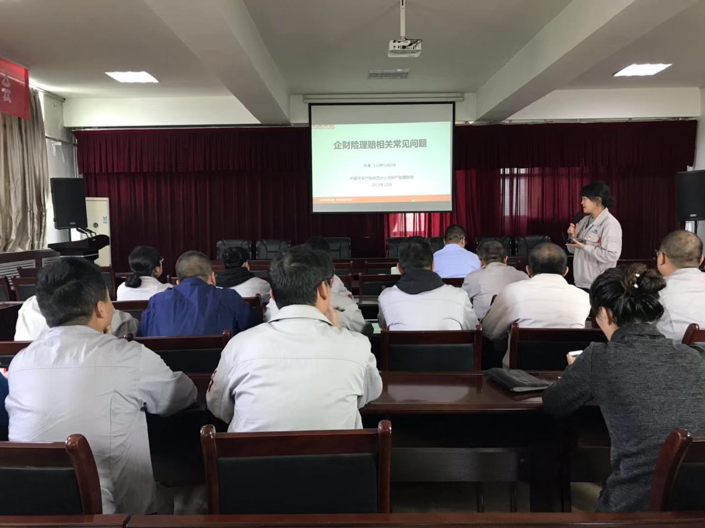 為全面提高職工風(fēng)險(xiǎn)防范意識(shí),了解財(cái)產(chǎn)綜合保險(xiǎn)及機(jī)器設(shè)備損壞保險(xiǎn)相關(guān)知識(shí),從而降低損失,保障公司生產(chǎn)經(jīng)營(yíng)的正常進(jìn)行,10月8日下午公司邀請(qǐng)中國(guó)平安財(cái)產(chǎn)保險(xiǎn)股份有限公司陜西分公司財(cái)產(chǎn)險(xiǎn)理賠部張渴老師授課,舉辦財(cái)產(chǎn)保險(xiǎn)知識(shí)講座。公司相關(guān)各部門(mén)及業(yè)務(wù)人員參加了培訓(xùn)。 培訓(xùn)課程內(nèi)容包括保險(xiǎn)基本原則、財(cái)產(chǎn)險(xiǎn)險(xiǎn)種、案例分析、報(bào)案流程及特色服務(wù),培訓(xùn)老師結(jié)合近年來(lái)發(fā)生的事故案例,為大家進(jìn)行了全面講解,通過(guò)現(xiàn)場(chǎng)操作演練、答疑解惑等方式,讓培訓(xùn)人員了解了財(cái)產(chǎn)綜合保險(xiǎn)、機(jī)器設(shè)備損壞保險(xiǎn)、理賠服務(wù)標(biāo)準(zhǔn)等方面的知識(shí),此次培訓(xùn),使大家進(jìn)一步了解了企業(yè)財(cái)產(chǎn)保險(xiǎn)知識(shí),對(duì)兩大險(xiǎn)種有了更加深刻的認(rèn)識(shí),培訓(xùn)效果顯著,為促進(jìn)公司高質(zhì)量安全發(fā)展奠定了堅(jiān)實(shí)基礎(chǔ)。 |