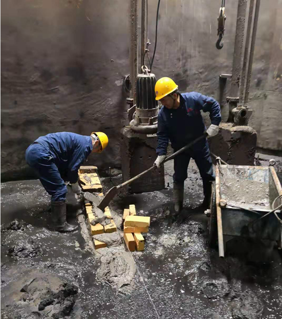|     陽(yáng)極分公司現(xiàn)有的污水處理系統(tǒng)缺少初期污泥沉淀池,雜質(zhì)形成的大量污泥隨潛污泵進(jìn)入污水處理系統(tǒng),不僅影響設(shè)備的水處理能力,或造成設(shè)備損壞,甚至出水水質(zhì)不能達(dá)到環(huán)保標(biāo)準(zhǔn)。為此,陽(yáng)極分公司動(dòng)力車(chē)間召開(kāi)了調(diào)節(jié)池技術(shù)改造專(zhuān)題研究會(huì)議,制定方案,實(shí)施改造。 10月初,污水調(diào)節(jié)池改造工程在空壓污水班班長(zhǎng)任延峰的帶領(lǐng)下,王文慶、岳剛、何祥等同志實(shí)施改造。他們利用僅有的手推車(chē),不畏艱難,將磚和水泥吊運(yùn)到8米多深的水池。池下光線(xiàn)差,空氣封閉,潮濕,排水期間又逢連陰雨,又為改造工程增添了難度和強(qiáng)度,他們?nèi)淌苡倌嗌l(fā)的臭味和濕冷潮氣的侵襲,一磚一磚嚴(yán)密壘砌,拉緊線(xiàn),對(duì)平縫,保證墻體平直通順。近一個(gè)月的時(shí)間,硬是在池底筑起了一道高1米,長(zhǎng)30米的淤泥圍擋墻。調(diào)節(jié)池具備了沉淀功能,達(dá)到環(huán)保綠色生產(chǎn)要求及節(jié)能循環(huán)再利用的效果,被職工們稱(chēng)為“效率”墻。 污水“效率”墻的砌筑,為陽(yáng)極分公司污水處理環(huán)保達(dá)標(biāo)、系統(tǒng)安全高效運(yùn)行提供了技術(shù)保障。  |
