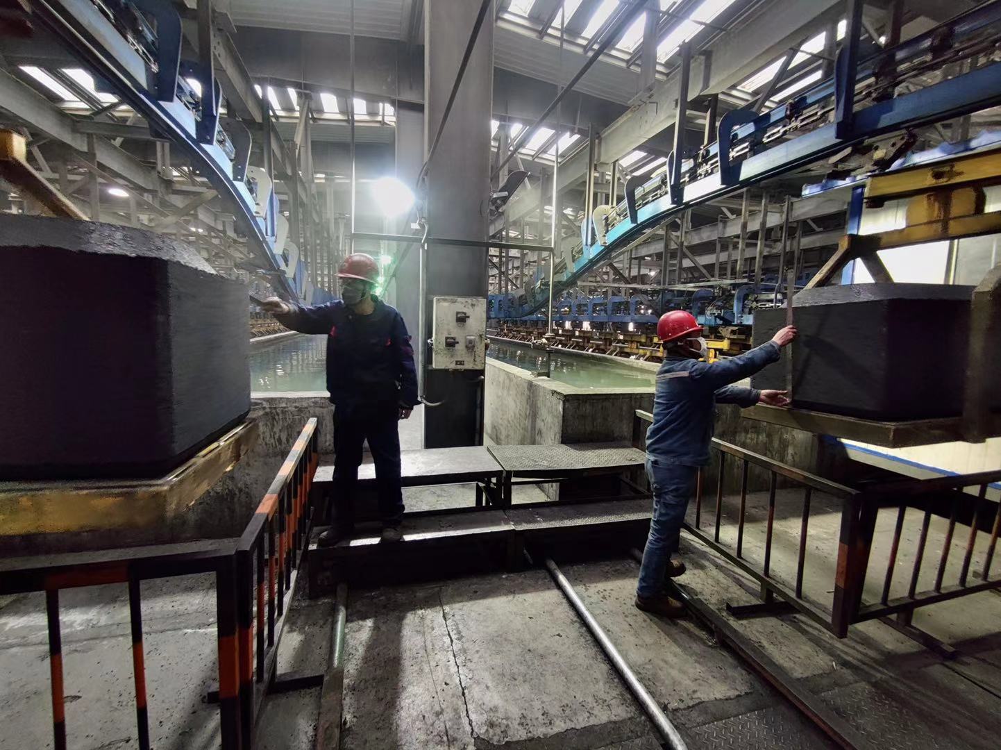 陽極分公司成型車間由兩條生產(chǎn)線組成,設(shè)計雙線滿負荷年產(chǎn)能30萬噸,前期在滿足計劃產(chǎn)量的情況下,一直處于單線交替運行狀態(tài),但隨著焙燒車間第四火焰系統(tǒng)及煅燒車間罐式爐相繼點火啟動,一條線的生陽極產(chǎn)量已無法滿足供應(yīng)需求,作為陽極分公司生產(chǎn)過程中的核心環(huán)節(jié),成型車間雙線啟動勢在必行。11月10日上午10時30分,經(jīng)過前期精心準(zhǔn)備,成型車間在確保1#生產(chǎn)線平穩(wěn)運行的情況下正式啟動2#配料線,全面實現(xiàn)雙線同時生產(chǎn)運行。 啟動前期,成型車間通過合理優(yōu)化人員結(jié)構(gòu),完善細化設(shè)備檢修,多次組織召開安全生產(chǎn)工藝培訓(xùn),同時克服了人員短缺、新調(diào)入員工年齡偏大、操作技能生疏等諸多困難;分公司領(lǐng)導(dǎo)、相關(guān)部門及車間生產(chǎn)管理、技術(shù)人員多次進行現(xiàn)場研討,對中碎系統(tǒng)供料、熱媒溫度、配料配方等問題協(xié)商討論,并逐項進行生產(chǎn)線實操檢驗消缺,確保雙線順利啟動。啟動過程中,作業(yè)人員嚴格按照安全操作規(guī)程、啟動方案要求,從配料混捏到壓模成型一氣呵成,11時40分,隨著2#線第一組生陽極塊順利下線,標(biāo)志著成型雙線啟動全面完成。雙線啟動生產(chǎn)對現(xiàn)場安全生產(chǎn)管理、設(shè)備高效滿負荷運轉(zhuǎn)提出更高的要求,后期車間將組織車間骨干、技術(shù)人員進行不間斷巡視檢查,實時監(jiān)測產(chǎn)品質(zhì)量,根據(jù)質(zhì)量信息反饋,對標(biāo)配料配方、工藝溫度等參數(shù)及時做出調(diào)整,保證兩條生產(chǎn)線安全、持續(xù)、平穩(wěn)運行的同時最大程度提高生陽極合格率。 陽極分公司成型車間雙線同時啟動生產(chǎn),生陽極單日產(chǎn)量從500余塊增加至1000余塊,完全滿足焙燒車間四個火焰系統(tǒng)裝爐需求,對陽極分公司生產(chǎn)工藝鏈閉合起到了鞏固作用,為分公司全面達產(chǎn)達標(biāo)奠定了堅實基礎(chǔ)。 |