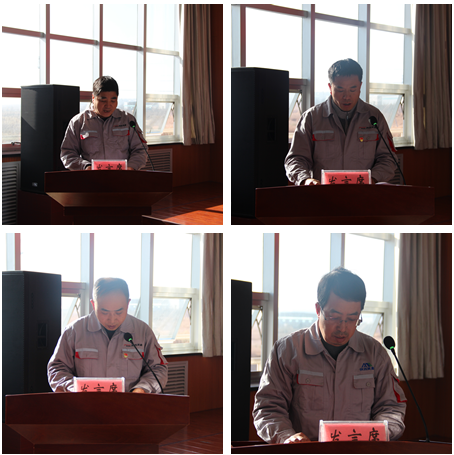 會(huì)上,電廠副經(jīng)理薛民勝傳達(dá)公司《關(guān)于切實(shí)加強(qiáng)2021年安全生產(chǎn)工作的決定》;電廠副經(jīng)理郭軍營(yíng)作2020年安全生產(chǎn)工作報(bào)告;電廠黨總支書記、經(jīng)理孫陽(yáng)與各部門、項(xiàng)目部簽訂《安全生產(chǎn)、環(huán)境保護(hù)、消防工作目標(biāo)考核責(zé)任書》;電廠主要負(fù)責(zé)人、分管安全生產(chǎn)以及安全管理人員分級(jí)作出安全生產(chǎn)承諾;電廠相關(guān)部門及項(xiàng)目部就全面做好2021年度安全生產(chǎn)工作進(jìn)行表態(tài)發(fā)言。