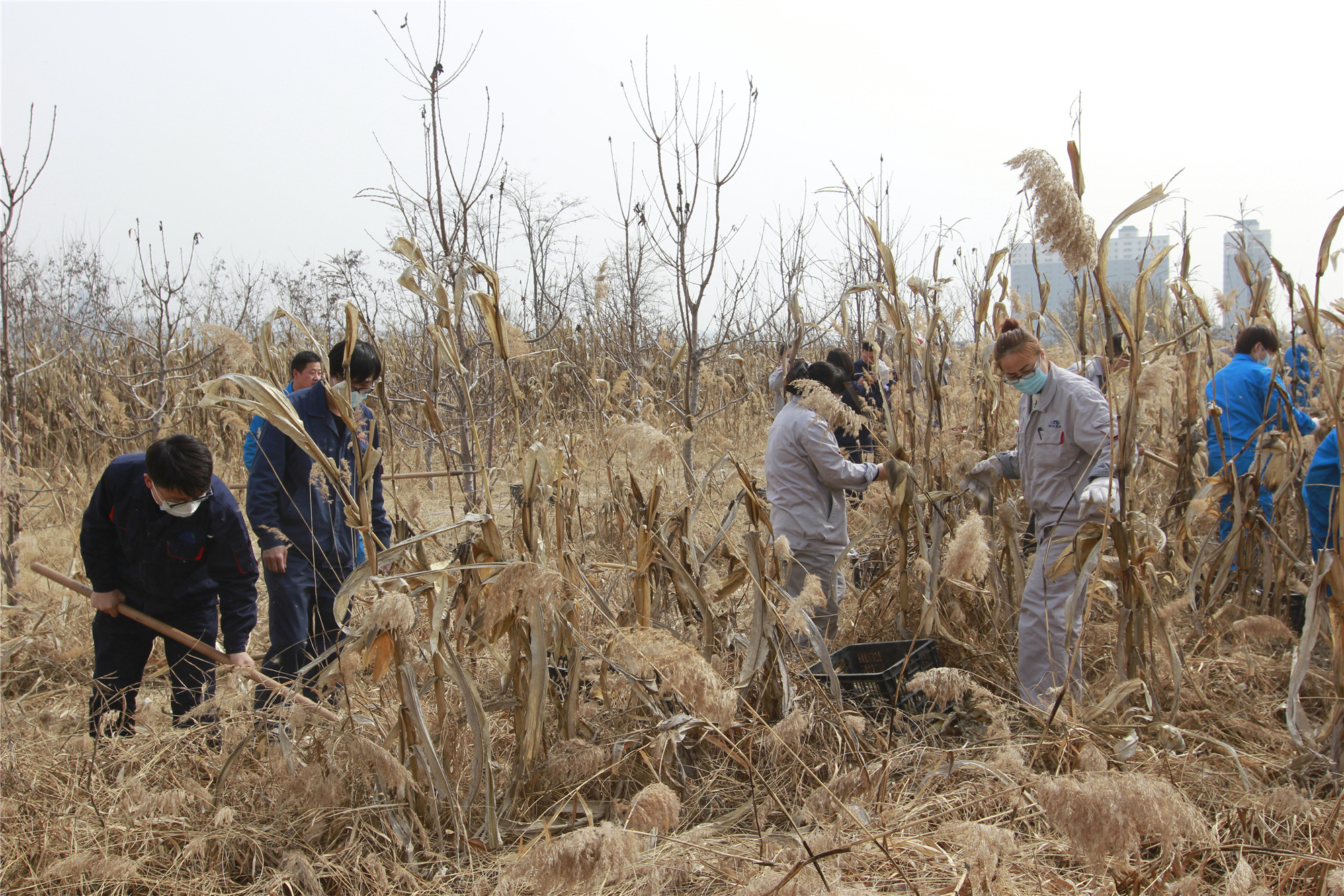 本次志愿者活動(dòng)的主要任務(wù)是收獲生態(tài)農(nóng)場(chǎng)中遺留的玉米以及將玉米稈鏟除,清理玉米地,為公司生態(tài)農(nóng)場(chǎng)換“新衣”。下午2:30,來自公司機(jī)關(guān)、陽極分公司、錦陽電廠、鋁鎂合金分公司、質(zhì)檢計(jì)量中心的團(tuán)員青年志愿者紛紛抵達(dá)活動(dòng)現(xiàn)場(chǎng),簡(jiǎn)單的任務(wù)安排后,青年志愿者開始為公司生態(tài)農(nóng)場(chǎng)進(jìn)行義務(wù)勞動(dòng)。