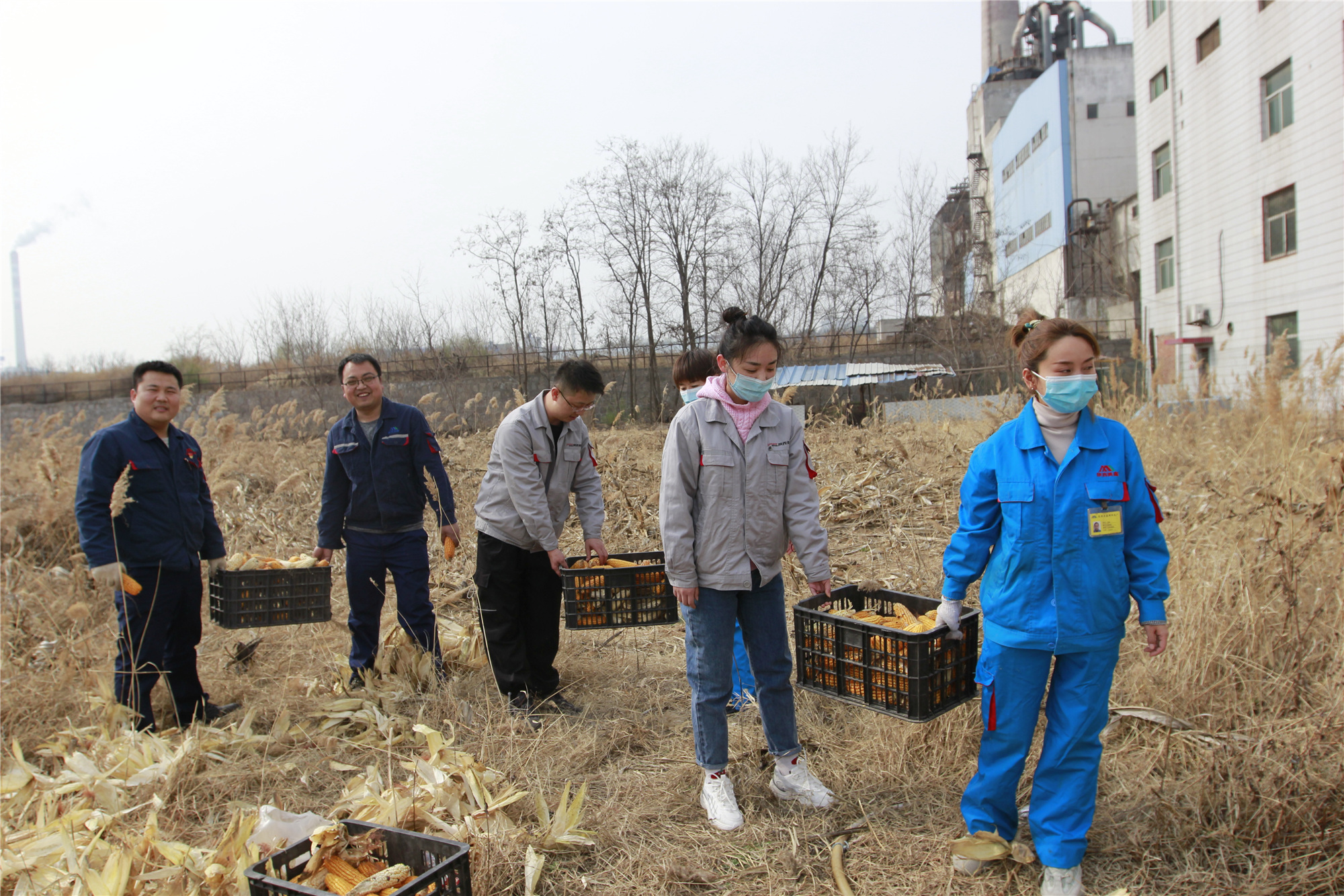 此次活動(dòng)得到了公司后勤服務(wù)中心的大力支持,他們?yōu)橹驹刚邷?zhǔn)備了鋤頭、鐵鍬、塑料筐等勞動(dòng)工具。志愿者們各自分工,女同志兩人一組,抬起塑料筐,負(fù)責(zé)掰玉米,男同志拿起鋤頭、鐵鍬,將一株株收獲過得的玉米稈鏟到。太陽當(dāng)頭照,大家都已滿頭大汗,但大家無人喊苦,無人喊累,熱情高漲。在大家一個(gè)多小時(shí)的辛勤勞作下,生態(tài)農(nóng)場(chǎng)舊貌換新顏。大家望著一框框的玉米,豐收的喜悅灑滿臉龐。