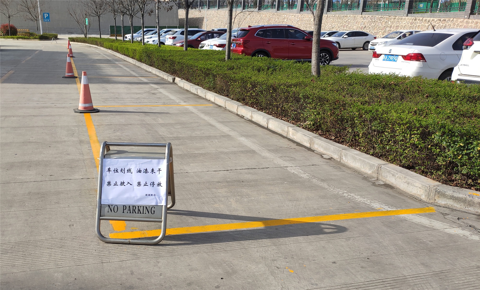為避免油漆未干之前車(chē)輛壓毀新劃定車(chē)位,提前在停車(chē)區(qū)域前做好警示標(biāo)志,滿(mǎn)足停放條件后對(duì)全廠開(kāi)放。后期,分公司團(tuán)總支還將對(duì)雨水收集池周邊區(qū)域進(jìn)行車(chē)位畫(huà)線(xiàn),徹底解決廣大職工停車(chē)難題。