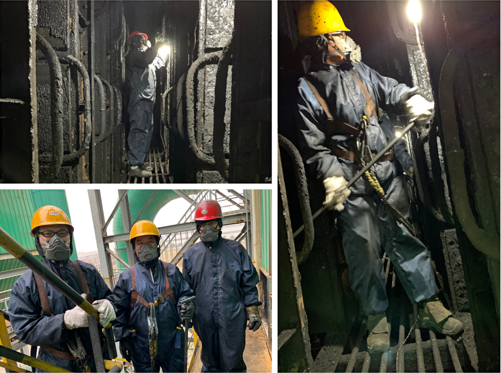 針對這一問題,分公司領(lǐng)導(dǎo)高度重視,組織相關(guān)部門、車間、班組召開專題會,安排專業(yè)人員進(jìn)入電捕內(nèi)部了解情況,制定詳細(xì)的清理方案。由于電捕焦油器內(nèi)部結(jié)構(gòu)復(fù)雜、環(huán)境惡劣、空間狹小,只能采用人工手動清理的方法。清焦過程中,作業(yè)人員嚴(yán)格按照限空間作業(yè)安全要求及控制措施,穿戴好勞保防護(hù)用品,克服電捕內(nèi)部光線暗、封閉悶熱等特殊環(huán)境,按計劃保質(zhì)保量的完成既定清焦任務(wù),同時,認(rèn)真做到班班有交接、班班有記錄,確保清理工作徹底無遺漏和人員安全。經(jīng)過兩個月的努力,一、二號凈化系統(tǒng)的電捕除塵器清焦工作已全部完成,目前運(yùn)行平穩(wěn),各項指標(biāo)明顯好轉(zhuǎn)。