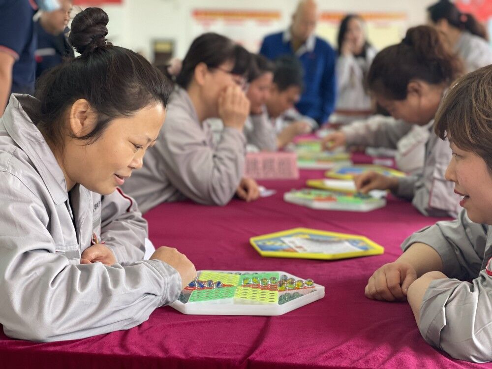 看,整個(gè)活動(dòng)現(xiàn)場(chǎng)時(shí)而緊張,時(shí)而雀躍。這邊乒乓球比賽中,女選手絲毫不輸男選手,拿出自己穩(wěn)健的技術(shù),硬生生的把這場(chǎng)比賽打成了自己的主場(chǎng);象棋參賽者都?xì)舛ㄉ耖e,架起“當(dāng)頭炮”,暗伏“連環(huán)馬”,棋盤上一較高低,好不熱鬧;套圈項(xiàng)目最受歡迎,大家都躍躍欲試,使出渾身解數(shù)。經(jīng)過(guò)選手們激烈的角逐,賈春莉獲得了乒乓球、跳繩比賽的雙第一名的好成績(jī),邵迎春獲得了跳棋比賽第一名、李軍獲得了象棋比賽第一名。