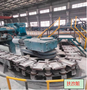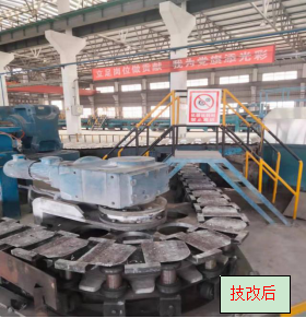 鋁鎂合金分公司鑄造車間承擔(dān)著分公司30萬(wàn)噸電解鋁成品鑄錠的生產(chǎn)工作,既是最終鋁錠成品的生產(chǎn)車間,也是了解電解鋁工藝的必經(jīng)之地,其中的鋁錠生產(chǎn)線更是整個(gè)車間的重中之重。 鑄造車間3#鑄造線自今年運(yùn)行以來(lái),時(shí)常出現(xiàn)鑄機(jī)環(huán)鏈卡錠問(wèn)題,導(dǎo)致現(xiàn)場(chǎng)操作人員不得不重新封堵?tīng)t眼、清理溜槽、無(wú)法正常灌注鋁液、使整個(gè)鑄錠生產(chǎn)線系統(tǒng)停止運(yùn)行,導(dǎo)致整個(gè)電解生產(chǎn)的正常秩序都受到不同程度的影響,可以說(shuō)一個(gè)問(wèn)題造成了一系列的惡性循環(huán)。問(wèn)題出現(xiàn)后分公司檢修車間查找故障點(diǎn)、對(duì)照?qǐng)D紙、仔細(xì)觀察揣摩并與鑄造車間人員現(xiàn)場(chǎng)多次分析,最終找出問(wèn)題原因,是由于環(huán)鏈與鑄機(jī)在原點(diǎn)定位上不能同步,鑄機(jī)接錠裝置不能將鋁錠放置在環(huán)鏈托盤正中心,導(dǎo)致出現(xiàn)卡錠現(xiàn)象。檢修車間以問(wèn)題為導(dǎo)向,制定出詳細(xì)解決方案:以鑄機(jī)為基準(zhǔn),將環(huán)鏈托盤加裝托錠板,將原設(shè)計(jì)中以環(huán)鏈單個(gè)托盤為中心的原點(diǎn)對(duì)位方式,改成以整個(gè)環(huán)鏈為一體與鑄機(jī)基準(zhǔn)原點(diǎn)對(duì)位的方式,從根本上解決了卡錠現(xiàn)象。 經(jīng)過(guò)一段時(shí)間運(yùn)行觀察,技改后的鋁錠生產(chǎn)線再未出現(xiàn)卡錠現(xiàn)象,3#鑄機(jī)系統(tǒng)安全平穩(wěn)運(yùn)行。 |