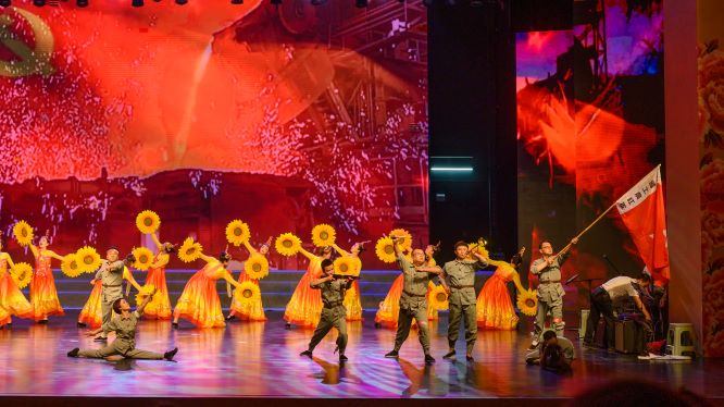 礦業(yè)公司表演的情景合唱曲目《映山紅》,通過現(xiàn)場(chǎng)情景重現(xiàn)革命故事,演繹了人民群眾對(duì)紅軍戰(zhàn)士的無(wú)限熱愛與不舍之情,表達(dá)了生活在黑暗之中的蘇區(qū)人民渴盼紅軍歸來(lái)的強(qiáng)烈心聲和與黑暗勢(shì)力殊死搏斗的革命意志,更加詮釋了沒有共產(chǎn)黨就沒有新中國(guó)。