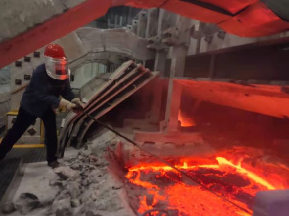時值酷暑,烈日當(dāng)空,火辣辣的陽光曝曬著大地。在鋁鎂合金分公司電解廠房里,電解爐散發(fā)出來的陣陣余熱,讓整個廠房像是一座蒸爐,但這樣的高溫條件并不能阻擋電解一線員工的工作熱情。他們內(nèi)穿秋衣秋褲,外穿厚實的牛仔工作服,腳踩隔熱鞋,頭戴裝有防護(hù)鏡的頭盔,手上套著沉甸甸的隔熱手悶子,在高達(dá)60℃的工作環(huán)境中揮汗如雨,用實際行動詮釋著敬業(yè)和奉獻(xiàn)的含義,譜寫出一曲曲戰(zhàn)高溫、斗酷暑的勞動贊歌。 就是在這樣的環(huán)境下,隨處可以看到換極的、出鋁的、撈渣的、打火眼的、收邊整形的等高溫作業(yè)。 快看,換極人將槽罩打開的瞬間,高達(dá)七八百度的熱輻射撲面而來,他們穿戴上阻燃隔熱的圍裙、套袖、防護(hù)面罩、防護(hù)鏡,使原本就高溫的工作環(huán)境更加悶熱異常,他們先將“換極安全護(hù)欄”安放到位,然后扛起大鉤沖進(jìn)槽間開始鉤撈殼面塊。撈完殼面塊放下大鉤換成大耙再次進(jìn)入工作面的電解工開始處理爐底,鉤、帶、扒一系列動作猶如行云流水一樣。這一工作最為費時,必須將爐底處理干凈,才能避免換極后可能出現(xiàn)的電壓波動。最后就是測量兩水平,清掃平衡母線浮灰,指揮安放新極,人工初封極,天車覆蓋保溫料。為了避免電解槽出現(xiàn)不必要的換極波動,所有的工作必須在20分鐘之內(nèi)完成。汗水模糊了雙眼、秋衣秋褲、工作服早已被汗水浸透,但是電解人沒有一句怨言,依然堅守在電解槽旁,有條不紊的進(jìn)行著標(biāo)準(zhǔn)操作。大杯大杯的綠豆湯,咕嘟咕嘟的灌下,一次兩瓶的藿香正氣水一口就被喝干...... 戰(zhàn)高溫,熱情不減;斗酷暑,決心依然。他們選擇堅守、選擇奉獻(xiàn),是因為他們赤誠不變的“電解情”,是因為他們身上的責(zé)任和擔(dān)當(dāng)......致敬在高溫下奮斗的電解人! |