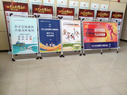 線下宣傳,宣傳效果好。在公司機關(guān)及各單位LED顯示屏滾動播放“十四運”標語口號,在醒目位置設(shè)置了多塊“十四運”宣傳展板,各單位車間通過張貼海報、懸掛宣傳橫幅,切實達到了良好的宣傳效果。