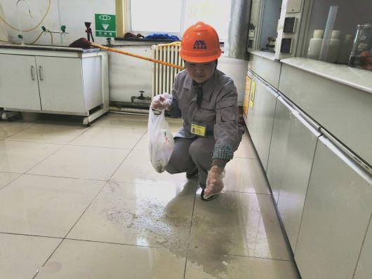 為進一步加強質(zhì)檢計量中心實驗室人員安全宣傳教育,強化相關(guān)人員的實驗室安全防護意識,增強廣大職工應(yīng)對實驗室危險化學(xué)品泄露事故的應(yīng)急處置能力,近日,質(zhì)檢計量中心檢驗三室組織開展模擬分析人員在日常工作中不慎將濃鹽酸打翻灑落、導(dǎo)致人員被灼的緊急救援及現(xiàn)場處置演練活動。中心黨支部書記、主任王平現(xiàn)場觀摩。