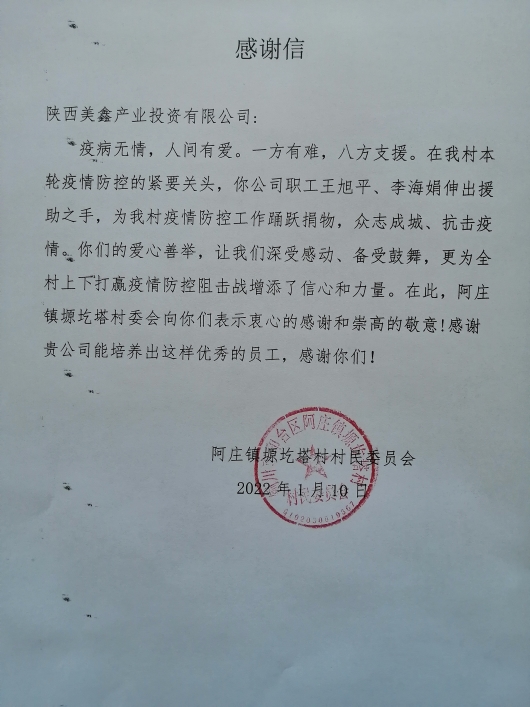在近期疫情防控緊張的形勢下,每每看到這些鄉(xiāng)村基層防疫工作人員舍小家為大家,在寒風(fēng)里堅(jiān)守崗位,為人民群眾生命健康日夜值守,尤其是農(nóng)村防疫抗疫形勢點(diǎn)多面廣、防控難度大,基層工作者工作辛苦、勞累,于是王旭平與妻子李海娟商量決定盡綿薄之力,為了疫情防控奉獻(xiàn)拳拳之心,110日,他們夫妻向印臺區(qū)阿莊鎮(zhèn)塬圪塔村委會自費(fèi)捐贈了價(jià)值1300元的醫(yī)用口罩、酒精、方便面、牛奶、火腿腸、鍋盔等物資,為鄉(xiāng)村基層抗疫奉獻(xiàn)了愛心,表達(dá)了他們對奮戰(zhàn)在鄉(xiāng)村一線防疫人員的敬意。