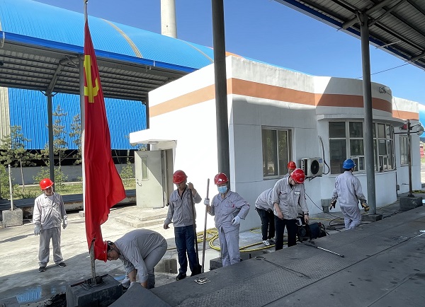 高溫“烤”驗入黨初心,酷暑“汗”衛(wèi)精確計量。時值盛夏,質(zhì)檢計量中心黨支部立足生產(chǎn)實際,組織開展“清理磅秤”主題黨日活動,中心黨員參加了此次活動。 此次活動主要集中于錦陽電廠,活動中,大家分工明確,不怕臟累,用千斤頂將磅秤頂起,取出傳感器,分區(qū)域清理底部堆積而成的煤泥,對于沉積厚實無法破除的煤泥,俯下身去用高壓水槍進行沖洗后再用鐵锨將其鏟除后,再次進行沖洗,如此反復,短短1小時內(nèi),磅秤便煥然一新。清理結(jié)束后,技術(shù)人員將磅秤傳感器歸位,落下磅秤并進行角差校驗,確保重新投入運行后計量精確。 通過本次活動,切實提高了磅秤計量的精準度,充分激發(fā)了廣大黨員職工的責任意識和服務意識,使黨員職工在勞動中進一步錘煉了黨性。在今后的工作中,中心黨支部會持續(xù)開展此類活動,讓黨旗在生產(chǎn)一線持續(xù)飄揚。  |