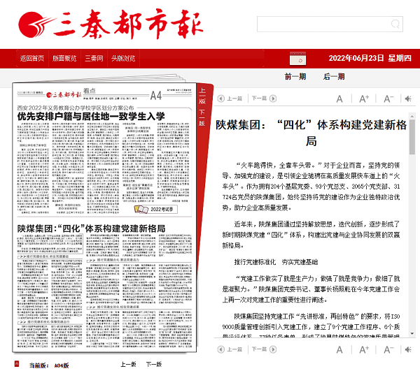 三秦都市報 2022年6月23日A4 陜煤集團(tuán):“四化”體系構(gòu)建黨建新格局 “火車跑得快,全靠車頭帶。”對于企業(yè)而言,堅持黨的領(lǐng)導(dǎo)、加強黨的建設(shè),是引領(lǐng)企業(yè)馳騁在高質(zhì)量發(fā)展快車道上的“火車頭”。作為擁有204個基層黨委、93個黨總支、2065個黨支部、31724名黨員的陜煤集團(tuán),始終堅持將黨的建設(shè)作為企業(yè)獨特政治優(yōu)勢,助力企業(yè)高質(zhì)量發(fā)展。 近年來,陜煤集團(tuán)通過堅持解放思想,迭代創(chuàng)新,逐步形成了新時期陜煤黨建“四化”體系,構(gòu)建出黨建與企業(yè)協(xié)同發(fā)展的雙贏新格局。 推行黨建標(biāo)準(zhǔn)化 夯實黨建基礎(chǔ) “黨建工作做實了就是生產(chǎn)力;做強了就是競爭力;做細(xì)了就是凝聚力。”陜煤集團(tuán)黨委書記、董事長楊照乾在今年黨建工作會上再一次對黨建工作的重要性進(jìn)行闡述。 陜煤集團(tuán)堅持黨建工作“先講標(biāo)準(zhǔn),再創(chuàng)特色”的要求,將ISO9000質(zhì)量管理創(chuàng)新引入黨建工作,建立了9個黨建工作程序、6個質(zhì)量運行體系、77種任務(wù)表單,形成了獨具陜煤特色的黨建質(zhì)量管理體系,也成為了第一個完成黨建質(zhì)量管理體系認(rèn)證的陜西省屬企業(yè)。 值得一提的是,為打通黨建“最后一公里”,陜煤集團(tuán)還不斷將精力集中在推動基層黨支部標(biāo)準(zhǔn)化建設(shè)中,從成立督導(dǎo)專班,抓標(biāo)準(zhǔn)統(tǒng)一,到制定《黨支部標(biāo)準(zhǔn)化規(guī)范化工作手冊》《典型案例匯編》《督導(dǎo)組培訓(xùn)學(xué)習(xí)手冊》《工作問答手冊》,拍攝制作108部黨支部標(biāo)準(zhǔn)化教學(xué)系列動畫視頻,解決了黨務(wù)工作者不會干和如何干的問題。先后幫助和指導(dǎo)基層黨支部完成各類整改項目6648項。 “從最初的工作不規(guī)范,到對照標(biāo)準(zhǔn),規(guī)范開展‘三會一課’、主題黨日、組織生活會、‘雙評’、談心談話等工作,黨支部和黨員的凝聚力、戰(zhàn)斗力和創(chuàng)造力得到了全面提升。”作為陜煤集團(tuán)“黨支部標(biāo)準(zhǔn)化、規(guī)范化示范點”的蒲白建莊礦業(yè)公司物資供應(yīng)部黨支部書記尚建山深有體會。這也是陜煤集團(tuán)近年來扎實開展標(biāo)準(zhǔn)化黨建工作的預(yù)期效果和有力證明。 據(jù)悉,陜煤集團(tuán)從筑基、提升、鞏固、成效、品牌入手,通過257天五個階段對976個黨支部的細(xì)抓嚴(yán)管,并對所有支部采取查閱資料臺賬、現(xiàn)場提問、觀摩組織生活等方式,堅持壓實工作要求。截至去年底,2065個黨支部標(biāo)準(zhǔn)化建設(shè)工作已實現(xiàn)100%全面達(dá)標(biāo)。 推行黨建系統(tǒng)化 保障黨建運行 如何系統(tǒng)性思考當(dāng)前黨建工作,著力構(gòu)建“大黨建”工作格局,使黨建工作時刻保持生機(jī)和活力,是陜煤集團(tuán)近年來一直研究的一項重要課題。 從“十三五”開始,陜煤集團(tuán)便運用“大黨建、大運行”思維,逐步建立出“黨、政、工、團(tuán)”相互關(guān)聯(lián)、互為支撐的黨建工作機(jī)制。形成了各黨務(wù)部門從做實做細(xì)自身工作,到相互聯(lián)動協(xié)作,再到近期、遠(yuǎn)期協(xié)同的良好機(jī)制。每年通過“黨建工作整體安排+組織、團(tuán)委等各專業(yè)年度工作要點+工作清單、細(xì)則”“1+N+S”一攬子工作布局,形成橫向到邊、縱向到底的黨建工作閉環(huán)管理模式,逐步創(chuàng)造出一批“陜煤標(biāo)準(zhǔn)”“行業(yè)標(biāo)桿”。 特別是在如何解決國企黨建重點難點熱點問題上,陜煤集團(tuán)成立了黨建實踐課題研究中心,創(chuàng)辦《陜煤黨建》內(nèi)刊,集思廣益,發(fā)動基層各單位共同思考和研究國企黨建相關(guān)課題,目前已累計課題研究37項,形成研究成果100余篇。實施的“融創(chuàng)”黨建工程、黨建體系先后獲得全國國有企業(yè)黨建課題研究成果一等獎等榮譽。 “項目成果離不開系統(tǒng)化的課題研究,我們就是要把項目成果轉(zhuǎn)化為工作成果、制度成果、理論成果,體現(xiàn)先進(jìn)性,爭做引領(lǐng)者。”陜北礦業(yè)黨委書記、董事長、總經(jīng)理郭佐寧介紹道。 陜北礦業(yè)作為陜煤集團(tuán)“北移”的代表性單位,在不斷提升安全生產(chǎn)效益的同時,經(jīng)過多年來在黨建工作與中心工作相互融合的課題研究中,嘔心瀝血總結(jié)出獨具特色的“一軸五驅(qū)”黨建工作體系,并在基層各單位進(jìn)行了廣泛推廣。有付出就有回報,2021年5月,陜北礦業(yè)《“一軸五驅(qū)”黨建體系建設(shè)》榮獲“2021年全國煤炭行業(yè)黨建工作示范案例”。 推行黨建融合化 激活黨建活力 陜煤集團(tuán)黨委書記、董事長楊照乾強調(diào):“把黨建工作與生產(chǎn)經(jīng)營工作同謀劃、同部署、同實施、同考核,在黨建工作與中心工作的同頻共振中,促進(jìn)企業(yè)生產(chǎn)經(jīng)營任務(wù)完成。” 陜煤集團(tuán)近年來的發(fā)展實踐充分證明,越是在企業(yè)困難時,越需要堅持黨的領(lǐng)導(dǎo),越是在企業(yè)改革發(fā)展的關(guān)鍵時期,就越需要黨組織發(fā)揮作用。如何將黨建工作與中心工作深度融合、同頻共振,陜煤集團(tuán)堅持走在了省屬企業(yè)的前列。 堅持把黨建