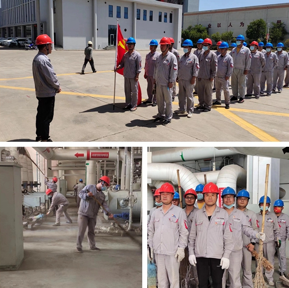 盛夏七月,驕陽似火。為進(jìn)一步提高文明生產(chǎn)水平,改善設(shè)備衛(wèi)生環(huán)境,近日,錦陽電廠檢修黨支部在#3機組爐側(cè)區(qū)域開展“安全生產(chǎn)設(shè)備衛(wèi)生治理”主題黨日活動。 活動前,檢修部全體黨員統(tǒng)一著裝在辦公樓前集合,支部書記郭軍營進(jìn)行現(xiàn)場安全風(fēng)險交底。隨后,大家?guī)е鴴咧、抹布、拖把,迅速投?/font>#3機組爐側(cè)設(shè)備現(xiàn)場,對給煤機、氣源柜、變送器柜、電氣控制柜、火檢冷卻風(fēng)機等設(shè)備進(jìn)行清掃。高溫悶熱的環(huán)境擋不住大家勞動的熱情,大家分工合作,干勁十足,每個人都汗流浹背、粉塵滿臉。經(jīng)過2個小時的辛勤勞動,#3機組爐側(cè)設(shè)備和地面衛(wèi)生全部打掃干凈,現(xiàn)場環(huán)境煥然一新。 本次主題黨日活動,增強了部門黨員的宗旨意識、責(zé)任意識、奉獻(xiàn)意識,用最樸素的方式和最誠摯的熱情展現(xiàn)了檢修黨支部積極向上的工作態(tài)度,為電廠安全生產(chǎn)打下堅實基礎(chǔ)。 |