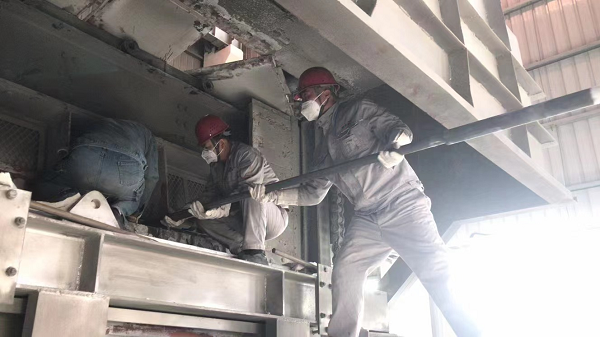 鋁鎂合金分公司檢修車間檢修二班承擔著鋁鎂合金供料車間、鑄造車間、電解槽控系統(tǒng)大小設(shè)備的維護、檢修任務(wù)。連續(xù)高溫天氣的“炙熱模式”使車間的鋼筋廠房變成了“大蒸爐”。在這樣的條件下,要確保每臺設(shè)備良好運行,就更得細化工作、強化責任,緊繃“安全弦”。 8月31日下午4:50分,在大家即將結(jié)束忙碌了一天的工作準備交接班時,檢修二班接到在崗職工延遲下班的通知。由于2號混合爐爐溫低于650攝氏度,經(jīng)現(xiàn)場確認需要進行硅碳棒更換作業(yè),只見他們熟練的整理工器具、穿戴勞保,迅速趕到現(xiàn)場與鑄造工密切配合,斷電、拉警戒線、搭建工作平臺……他們在墊著木板的爐門排煙罩內(nèi)工作了近三個小時,將一根根硅碳棒用5米的角鐵架送入爐膛,汗水浸濕了他們的全身,油污沾滿了他們的雙手,廠房周圍的設(shè)備轟鳴聲干擾不到他們,爐里散發(fā)的滾滾熱浪趕不走他們,因為他們心中有著無限力量。 高溫下⼀幕幕忙碌的身影讓我肅然起敬,這就是三伏天維修工的日常縮影,他們揮汗如雨,堅守崗位,不言退縮,在自己平凡的崗位上接受著高溫的考驗和洗禮,為車間的安全運轉(zhuǎn)保駕護航,用汗水和智慧詮釋著愛崗敬業(yè)的責任與擔當。  |