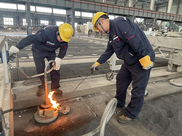 為確保陽(yáng)極分公司產(chǎn)量任務(wù)及代焙塊任務(wù)的順利完成,10月10日上午10:10分,按照分公司總體部署安排,焙燒車(chē)間第四套火焰系統(tǒng)(#1焙燒爐#2爐室)啟動(dòng)點(diǎn)火,分公司領(lǐng)導(dǎo)、各職能部門(mén)相關(guān)人員參加啟動(dòng)儀式。 點(diǎn)火啟動(dòng)前,分公司領(lǐng)導(dǎo),相關(guān)部門(mén)、責(zé)任車(chē)間高度重視,研究制定詳細(xì)方案和應(yīng)急預(yù)案,安排專(zhuān)人反復(fù)檢查爐室及設(shè)備運(yùn)行狀況,并深入現(xiàn)場(chǎng)進(jìn)行檢查督導(dǎo),強(qiáng)調(diào)啟動(dòng)注意事項(xiàng),同時(shí)在燃燒架?chē)娮旒友b鐵絲,保證點(diǎn)火啟動(dòng)順利完成。啟動(dòng)過(guò)程中,作業(yè)人員嚴(yán)格按照方案要求,一人負(fù)責(zé)開(kāi)啟電磁閥,一人手持火把點(diǎn)燃并調(diào)整火焰,按照預(yù)定192h升溫曲線,32h移爐周期,在#1焙燒爐#2爐室點(diǎn)火,烘爐運(yùn)轉(zhuǎn)按周期逐步恢復(fù)至正常6爐室運(yùn)轉(zhuǎn),隨著9火道至1火道依次交替點(diǎn)燃,第四套火焰系統(tǒng)啟動(dòng)圓滿完成。在接下來(lái)烘爐工作中,焙燒車(chē)間將加強(qiáng)24小時(shí)值班值守及巡視巡查工作,實(shí)時(shí)關(guān)注火焰情況并按要求進(jìn)行操作調(diào)整,充分保障氮氧化物的達(dá)標(biāo)排放及溫度曲線的穩(wěn)步提升。 第四套火焰系統(tǒng)的順利點(diǎn)火啟動(dòng),標(biāo)志著預(yù)焙陽(yáng)極焙燒工序邁上新臺(tái)階,代焙塊月產(chǎn)量得到顯著提升,也為分公司順利完成年度產(chǎn)量質(zhì)量任務(wù)提供了有力保障。 |