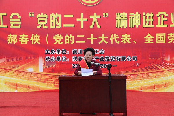 | 10月26日,公司邀請(qǐng)黨的二十大代表、全國(guó)勞模、銅川市耀州區(qū)石柱鎮(zhèn)西古莊村黨支部書(shū)記、村委會(huì)主任郝春俠進(jìn)企業(yè)宣講黨的二十大精神。 銅川市總工會(huì)相關(guān)負(fù)責(zé)人及公司領(lǐng)導(dǎo)出席會(huì)議,銅川市總工會(huì)機(jī)關(guān)、銘帝鋁業(yè)有限公司、陜西達(dá)美輪轂有限公司及公司黨員干部職工代表近600人參加此次會(huì)議。會(huì)議由公司黨委副書(shū)記李書(shū)平主持。 公司黨委書(shū)記、董事長(zhǎng)高曉兵致辭,對(duì)銅川市總工會(huì)黨組書(shū)記、常務(wù)副主席何建平和郝春俠代表的到來(lái)表示熱烈的歡迎和衷心的感謝。他表示,黨的十八大以來(lái),陜西美鑫公司始終堅(jiān)持以高質(zhì)量發(fā)展為主題,充分發(fā)揮國(guó)有企業(yè)在構(gòu)建“大循環(huán)、雙循環(huán)”發(fā)展新格局中應(yīng)有作用,積極踐行社會(huì)責(zé)任和企業(yè)擔(dān)當(dāng),為地方經(jīng)濟(jì)作出了積極貢獻(xiàn)。公司將倍加珍惜此次報(bào)告會(huì)帶來(lái)的高層次、高水平的實(shí)踐輔導(dǎo),以黨的二十大精神為指引,堅(jiān)決貫徹黨中央決策部署,擼起袖子加油干、風(fēng)雨無(wú)阻向前行,進(jìn)一步把循環(huán)經(jīng)濟(jì)產(chǎn)業(yè)鏈的藍(lán)圖繪就的更大更美好,以高質(zhì)量發(fā)展的實(shí)效來(lái)檢驗(yàn)學(xué)習(xí)成果。 “習(xí)近平總書(shū)記的講話,鏗鏘有力、振奮人心,如潮的掌聲一次又一次響起,讓人心潮澎湃、斗志昂揚(yáng)……”郝春俠分享思想收獲、傳遞飽滿熱情,這些真實(shí)感受和生動(dòng)實(shí)踐是最生動(dòng)、最有說(shuō)服力的教科書(shū),讓大家真真切切地接受了一次教育和洗禮。隨后,何建平通過(guò)對(duì)黨的二十大報(bào)告中的十五個(gè)部分內(nèi)容進(jìn)行分類(lèi)歸納和系統(tǒng)分析,提綱挈領(lǐng)式地傳達(dá)了黨的二十大精神,脈絡(luò)清晰、分析透徹,為更好地學(xué)深悟透黨的二十大精神提供了有力指導(dǎo)和幫助。 李書(shū)平強(qiáng)調(diào),要以此次學(xué)習(xí)為契機(jī),進(jìn)一步提高思想認(rèn)識(shí)、立足工作實(shí)際,把黨的二十大精神轉(zhuǎn)化為具體舉措和實(shí)際行動(dòng),為全面建設(shè)社會(huì)主義現(xiàn)代化國(guó)家、全面推進(jìn)中華民族偉大復(fù)興作出應(yīng)有貢獻(xiàn)。要深刻認(rèn)識(shí)黨的二十大勝利召開(kāi)的重大意義,深刻領(lǐng)會(huì)把握黨的二十大精神實(shí)質(zhì)和豐富內(nèi)涵。要深刻領(lǐng)會(huì)“五個(gè)牢牢把握”,推動(dòng)學(xué)習(xí)貫徹黨的二十大精神走深走實(shí),營(yíng)造濃厚學(xué)習(xí)氛圍,迅速掀起學(xué)習(xí)熱潮。要立足崗位實(shí)際,把學(xué)習(xí)教育成果轉(zhuǎn)化為開(kāi)新局、起好步的強(qiáng)大動(dòng)力,將黨的二十大部署要求落實(shí)到公司改革發(fā)展黨建各方面,一步一個(gè)腳印把黨的二十大精神付諸行動(dòng)、見(jiàn)之于成效。 會(huì)后,郝春俠還深入鋁鎂合金分公司鑄造車(chē)間與一線職工暢談黨的二十大精神學(xué)習(xí)貫徹感受體會(huì)。 公司職工紛紛表示,此次活動(dòng)不僅讓大家對(duì)黨的二十大精神有了較為全面系統(tǒng)的理解,也為大家深入學(xué)習(xí)黨的二十大精神提供了良好的方法指引。我們會(huì)把深入學(xué)習(xí)貫徹黨的二十大精神同學(xué)習(xí)貫徹習(xí)近平總書(shū)記來(lái)陜考察重要講話重要指示精神相結(jié)合,立足崗位、埋頭苦干,推動(dòng)各項(xiàng)工作穩(wěn)步向前,齊心協(xié)力奮力譜寫(xiě)企業(yè)高質(zhì)量發(fā)展新跨越新篇章。 |