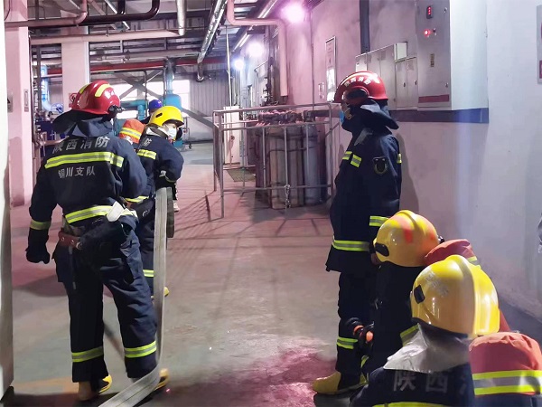 在隨后的演練中,銅川市消防救援支隊從實戰(zhàn)角度出發(fā),組織消防救援車5輛、消防隊員20余人在主廠房開展現(xiàn)場消防應(yīng)急實操演練,對參演裝備性能進行講解。通過演練,進一步增強了職工的消防安全意識,提高了火災(zāi)撲救工作的組織、處置及緊急情況下的應(yīng)變能力。