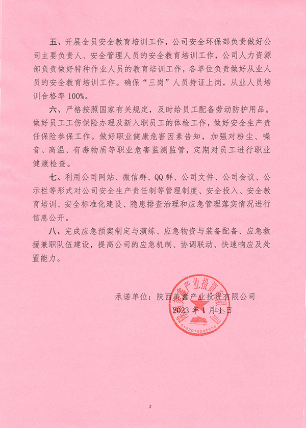 陜西美鑫產(chǎn)業(yè)投資有限公司安全生產(chǎn)承諾