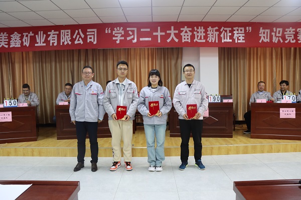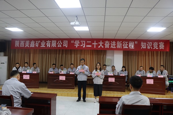 為引導公司廣大職工深刻領會、準確把握黨的二十大精神,4月17日下午,礦業(yè)公司黨支部開展“學習二十大 奮進新征程”知識競賽活動,以賽促學、以學促行,在檢驗廣大黨員干部職工的學習成效的同時,又一次掀起了學習貫徹黨的二十大精神的熱潮。 為搞好此次活動,活動前夕,黨支部成立了活動實施小組,分別就競賽試題的選用、活動開展的方式、參賽選手的確定及裁判仲裁組的人選等事宜進行了嚴格把關,精心謀劃、層層部署,為活動開展的高質量提供了堅強的保障。 活動分為“必答、搶答、對戰(zhàn)、風險”四個答題環(huán)節(jié),以黨小組為單位組建伍參加比賽;顒又,臺上參賽選手積極踴躍答題,臺下觀眾為各自選手加油助威,觀眾席不時傳來一陣陣熱烈的掌聲...活動歷時2小時,經過激烈的比拼,最終第三黨小組獲得了此次競賽的第一名。 此次競賽活動的開展,進一步激發(fā)了公司廣大黨員干部的學習熱情,加深了大家對黨的二十大精神的認識和理解,為新征程上推動各項工作高質量發(fā)展貢獻力量。 |