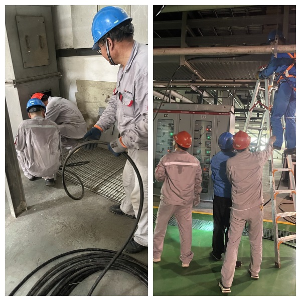為進(jìn)一步增強(qiáng)黨員干部的凝聚力、戰(zhàn)斗力,更好地保障電廠設(shè)備安全平穩(wěn)運(yùn)行,8月21日,錦陽電廠檢修黨支部開展“鋪設(shè)設(shè)備電纜 助推安全生產(chǎn)”主題黨日活動(dòng)。 錦陽電廠#4機(jī)汽機(jī)主廠房屋頂散熱風(fēng)機(jī)原設(shè)計(jì)進(jìn)線電纜四乘四平方,夏季工況下,不能滿足六臺屋頂散熱風(fēng)機(jī)同時(shí)持續(xù)運(yùn)行,廠房內(nèi)熱量無法及時(shí)排出,存在環(huán)境溫度高導(dǎo)致重要設(shè)備跳閘的風(fēng)險(xiǎn),給機(jī)組安全運(yùn)行帶來不確定因素。針對此項(xiàng)問題,檢修黨支部迎難而上,安排人員現(xiàn)場核對各散熱風(fēng)機(jī)的額定功率、額定電流并進(jìn)行定制計(jì)算,經(jīng)分析,判定原因?yàn)榫徑偏小不滿足風(fēng)機(jī)同時(shí)運(yùn)行需要。最終確定解決方案:更換原四乘四平方電纜為四乘十平方,保證原MCC通風(fēng)柜電源開關(guān)容量不變,重新設(shè)定保護(hù)定值。隨后黨員干部帶頭、職工積極參與,進(jìn)行完作業(yè)前技術(shù)和安全兩交底后,大家?guī)е俳镏械碾娎|及人字梯、鐵絲、扎帶等工器具迅速投入電纜鋪設(shè)工作中。本次作業(yè)分成三個(gè)小組,第一組從12.6米上方的除氧器平臺放下電纜,第二組在電纜橋架理順電纜并用扎帶固定電纜,第三組在下一層平臺拉電纜。在大家齊心協(xié)力下,歷時(shí)三個(gè)多小時(shí),近百米的黑皮電纜被規(guī)整的放在豎井和橋架內(nèi)直達(dá)MCC通風(fēng)柜,經(jīng)電氣專業(yè)人員對電纜頭壓制線鼻固定后接線、設(shè)定新的保護(hù)定值,風(fēng)機(jī)試轉(zhuǎn)正常,此項(xiàng)作業(yè)圓滿完成。 本次活動(dòng),在進(jìn)一步增強(qiáng)了廣大黨員干部的責(zé)任感和服務(wù)意識的同時(shí),為電廠設(shè)備長周期穩(wěn)定高效運(yùn)行提供了保障。 |