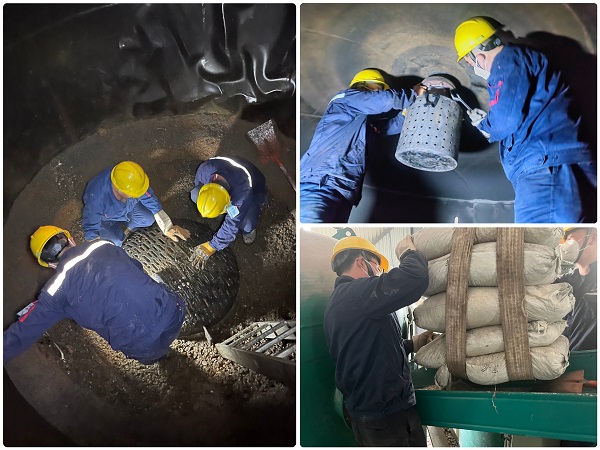 近日,陽極分公司動力車間污水處理站運行工在對1#污水處理系統(tǒng)過濾器進行反洗時,發(fā)現(xiàn)部分填料從反洗口異常排出,經(jīng)檢修人員現(xiàn)場檢查,確定是布水器故障導致的跑料問題。 為及時消除故障,車間立即制定搶修方案,抽調(diào)精干力量迅速展開搶修。搶修過程中,檢修人員辦理好受限空間工作票,做好通風、檢測等安全保障措施,隨后一邊清理罐內(nèi)殘料、拆裝布水器、緊固濾帽,一邊調(diào)運新的填料準備重新填裝,由于罐內(nèi)空間狹小、悶熱,要求作業(yè)人員20分鐘進行輪換,經(jīng)過車間上下共同努力,拆裝、填料工作順利完成,搶修任務圓滿結(jié)束,經(jīng)調(diào)試,過濾器出水狀態(tài)良好。 此次設(shè)備搶修工作,有效檢驗了車間受限空間搶修作業(yè)的組織管理能力,增強了檢修人員應對突發(fā)事件的搶修工作經(jīng)驗,確保了分公司污水處理設(shè)備長期穩(wěn)定運行。 |
