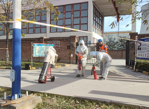 為深刻吸取山西呂梁永聚煤礦火災事故,進一步提升電廠上下應急聯動能力,11月28日下午,錦陽電廠在儲氫站外開展儲氫站氫瓶泄漏著火事故應急演練。電廠管理人員,各部門、項目部安全員和部分職工在現場進行觀摩。 儲氫站屬于電廠重點防火管轄區(qū)域,氫瓶泄漏著火易引發(fā)氫氣爆炸事故。演練模擬巡檢人員在儲氫站巡檢時檢測氫氣超標,迅速跑到儲氫站外匯報值長并果斷采取通風措施。值長立即聯系檢修部汽機班進行緊急處理,同時匯報安環(huán)部及電廠領導。汽機班長帶人迅速趕到儲氫站查看,發(fā)現有一氫瓶泄漏,隨即聯系運行人員對儲氫站泄漏點做安全隔離措施;警戒組立即在周邊拉起警戒線,禁止無關人員進入現場,避免造成二次傷害;參與搶險人員做好個人防護,快速用推車將泄漏瓶移到儲氫站外,用滅火器對著火點進行滅火,并對泄漏氫瓶正確規(guī)范泄壓;馂膿錅绾,經運行人員對儲氫站內氫氣監(jiān)測結果顯示正常后,演練圓滿結束。 演練結束后,電廠副經理郭軍營進行點評,肯定了本次演練效果并提出要求,要以此次演練活動為契機,進一步加強安全管理,全面提升員工應急處置能力,確保電廠經濟安全平穩(wěn)運行。 |