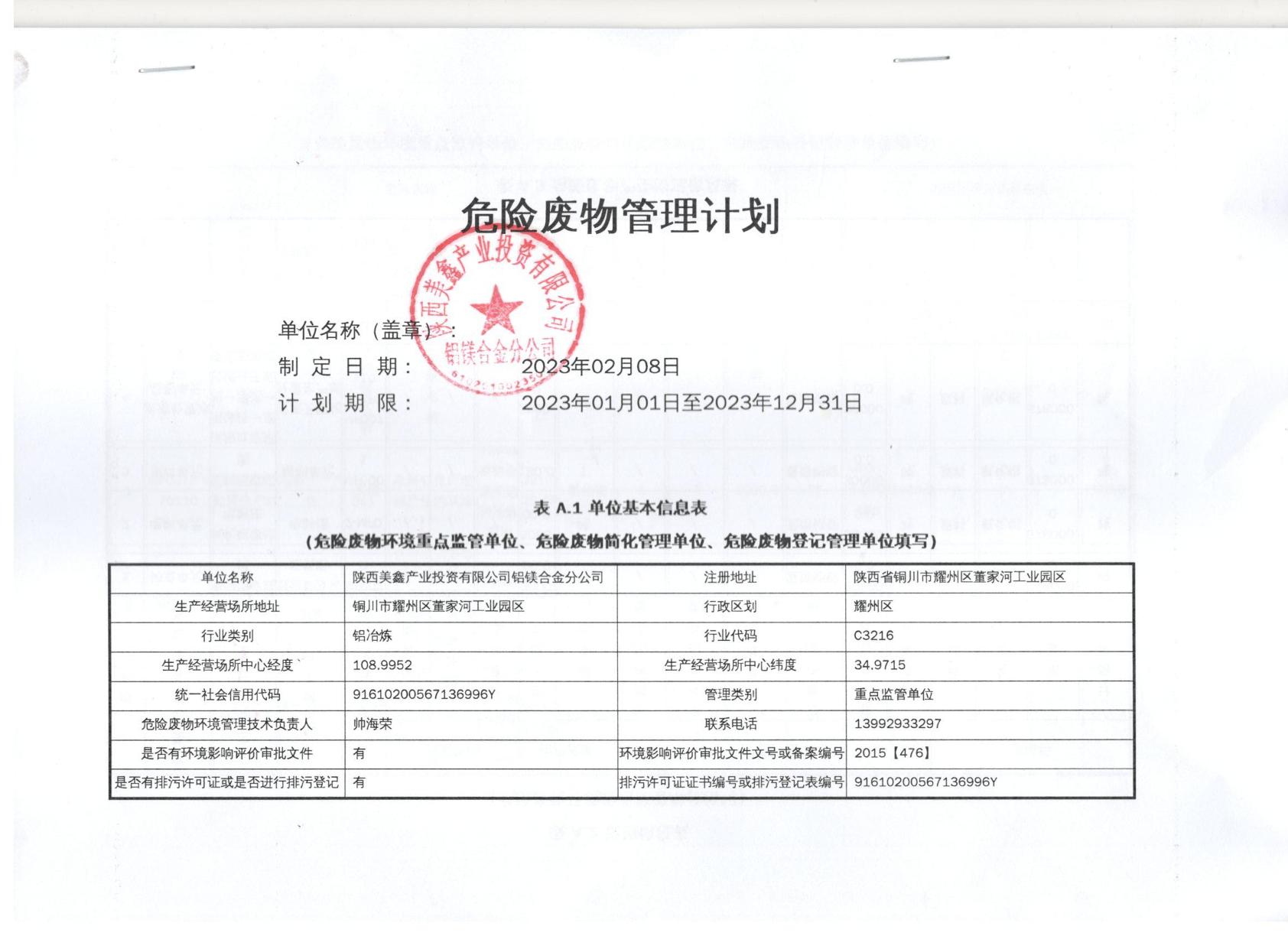危險(xiǎn)廢物管理計(jì)劃