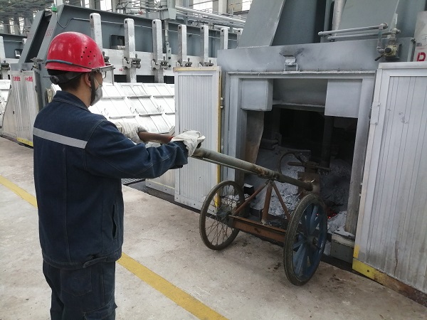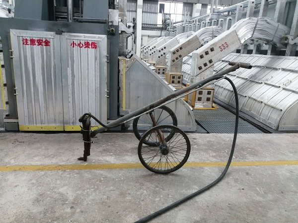 在500KA大型電解槽的前后兩端分別各有一個直徑約35-40公分的圓形洞口,主要用于鋁液吸出、炭渣打撈、物料添加、效應(yīng)熄滅、爐底勾帶等日常作業(yè),但是由于電解質(zhì)溶液的不斷凝固,需要定期對前后端洞口進行擴展維護。 日常作業(yè)時,作業(yè)人員需要使用手動風鎬進行擴孔作業(yè),不但勞動強度大,而且需要長時間近距離貼近開孔處,存在一定的安全隱患。為消除隱患提高效率,在鋁鎂合金分公司電解一車間技術(shù)革新小組積極攻關(guān)下,一輛高效、簡便,可實現(xiàn)遠距離操控的兩端頭開孔車于近日投入使用。該開孔車采用自行方式及杠桿原理,將手動風鎬固定在開孔車前端,人工開孔距離擴展至2米外,既保證了風鎬開孔力度和擴孔質(zhì)量,又減少了高溫輻射,勞動強度大幅度降低,開孔速度較以前也提高了3倍以上。 兩端頭開孔車的投入使用,是2024年電解一車間技術(shù)革新的首例成果,后續(xù),電解一車間技術(shù)革新小組將持續(xù)發(fā)揚工匠精神和創(chuàng)新精神,讓更多創(chuàng)新成果轉(zhuǎn)化為現(xiàn)實生產(chǎn)力。 |