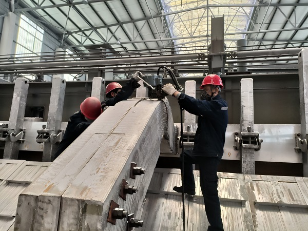 電解槽進電端軟連接是立柱母線與平衡母線重要的連接部件,起到導電作用,使立柱母線在上下移動過程中不會破壞母線結構。 但在電解作業(yè)過程中,天車打殼機頭易碰撞到軟連接,致使其產生破損,從而導致壓降增大、電耗增高,直接影響到生產實際。針對此種情況,車間安排綜合班人員在不影響正常生產的情況下,對電解槽進電端軟連接鋼帶損壞、脫落部分進行捆扎修復。經(jīng)過5天的努力,600余條電解槽進電端軟連接全部修復完畢,消除了軟連接破損造成的安全隱患和能源消耗。 此次修復工作,是電解二車間響應公司“降本增效”號召的又一有力舉措。今后,車間將持續(xù)引導動員職工積極參與生產設備設施的改造、修復,降低生產成本,減少能源損耗,以實際行動助力綠色低碳發(fā)展。 |