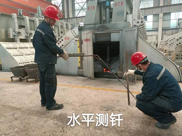 鋁鎂合金分公司電解二車間前期在電解生產(chǎn)過程中測(cè)量電解質(zhì)和鋁水平時(shí),使用的是120°水平測(cè)釬,操作時(shí)需同時(shí)拿測(cè)釬和直水平尺,增加操作人員工作量的同時(shí)也不易操作。 近期電解二車間黨支部創(chuàng)新小組經(jīng)過試驗(yàn)改進(jìn),將水平測(cè)釬改進(jìn)為角度測(cè)釬,測(cè)釬后把使用長(zhǎng)120㎝、直徑22mm的不銹鋼圓管,測(cè)釬前部為直徑18mm、長(zhǎng)度75㎝的實(shí)心鋼筋,測(cè)釬總重量由原先的5.2kg下降為2.7kg,測(cè)釬彎曲角度由60°變?yōu)?/font>25°,磁力影響寬度也由原來的120㎝下降為30㎝。此外還可以加裝固定快捷角度儀,測(cè)量時(shí)角度儀卡在測(cè)釬后把上,測(cè)量時(shí)不僅準(zhǔn)確而且方便。 改進(jìn)后的角度測(cè)釬重量減輕,磁力影響寬度、彎曲角度減小,不需要同時(shí)拿測(cè)釬和直水平尺,經(jīng)過工區(qū)多次試驗(yàn)使用效果良好,得到大家一致好評(píng),現(xiàn)已在工區(qū)實(shí)際生產(chǎn)當(dāng)中開始廣泛應(yīng)用。 |