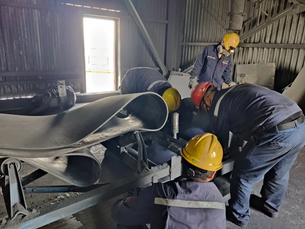 陽(yáng)極分公司煅燒車(chē)間在設(shè)備點(diǎn)檢過(guò)程中發(fā)現(xiàn)煅后倉(cāng)3221膠帶輸送機(jī)膠帶出現(xiàn)不同程度起皮開(kāi)裂現(xiàn)象。為了徹底消除此隱患,保證下游工序生產(chǎn)物料穩(wěn)定供應(yīng),車(chē)間決定對(duì)該膠帶輸送機(jī)膠帶進(jìn)行更換。 為保證更換工作順利開(kāi)展,車(chē)間結(jié)合現(xiàn)場(chǎng)實(shí)際制定了詳細(xì)的作業(yè)方案,吊運(yùn)所需備件及維修物資,并與相關(guān)車(chē)間做好溝通協(xié)調(diào),避免影響下游生產(chǎn)。在做好充分準(zhǔn)備后,車(chē)間挑選檢修精干力量投入更換工作。在更換過(guò)程中,機(jī)架的拆裝是膠帶輸送機(jī)的最基礎(chǔ)工作,作業(yè)人員耐心細(xì)致地逐個(gè)將零件做好標(biāo)記并注明安裝位置,保證設(shè)備能夠精準(zhǔn)安裝到位。制作膠帶輸送機(jī)接頭更是保證膠帶使用壽命的關(guān)鍵環(huán)節(jié),檢修人員采用硫化粘接法,按照工藝要求將膠帶接頭部位的帆布層和膠層做成對(duì)稱(chēng)等差階梯,將硫化溫度控制在145℃,在保障硫化最佳強(qiáng)度下進(jìn)行粘接作業(yè)。在大家的齊心協(xié)力下,歷時(shí)8小時(shí)順利完成煅后倉(cāng)膠帶輸送機(jī)膠帶更換工作,經(jīng)負(fù)載調(diào)試運(yùn)行正常后投入使用。 此次膠帶輸送機(jī)膠帶更換工作,消除了設(shè)備安全隱患,提高了設(shè)備使用性能,也為車(chē)間后期類(lèi)似工作積累了寶貴經(jīng)驗(yàn)。下一步,車(chē)間將加大設(shè)備點(diǎn)巡檢力度,及時(shí)發(fā)現(xiàn)消除設(shè)備隱患,提前做好預(yù)防性維護(hù)保養(yǎng)工作,進(jìn)一步保證設(shè)備高效平穩(wěn)運(yùn)行。 |