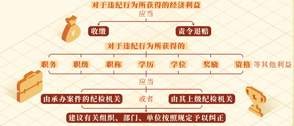 《中國共產(chǎn)黨紀(jì)律處分條例》對(duì)于違紀(jì)行為所獲利益如何處理作出了規(guī)定。主要分為兩種情況—— 對(duì)于違紀(jì)行為所獲得的經(jīng)濟(jì)利益,應(yīng)當(dāng)收繳或者責(zé)令退賠。對(duì)于主動(dòng)上交的違紀(jì)所得和經(jīng)濟(jì)損失賠償,應(yīng)當(dāng)予以接收,并按照規(guī)定收繳或者返還有關(guān)單位、個(gè)人。 依照《中國共產(chǎn)黨紀(jì)律處分條例》《中華人民共和國公職人員政務(wù)處分法》及相關(guān)指導(dǎo)性案例,在追究黨紀(jì)責(zé)任時(shí),處置涉案財(cái)物的主要方式為“收繳”和“責(zé)令退賠”;在追究監(jiān)察責(zé)任時(shí),處置涉案財(cái)物的主要方式為“沒收”“追繳”和“責(zé)令退賠”。其中,追究黨紀(jì)責(zé)任時(shí)對(duì)違紀(jì)所得予以“收繳”,相當(dāng)于追究監(jiān)察責(zé)任時(shí)對(duì)違法所得予以“沒收”和“追繳”。 “收繳”通常針對(duì)的是實(shí)施違紀(jì)違法行為所獲得的財(cái)物及其孳息收益,“責(zé)令退賠”通常針對(duì)的是違反規(guī)定揮霍浪費(fèi)國有資產(chǎn),如公款吃喝、公款旅游以及違反規(guī)定亂罰款、亂收費(fèi)獲得的財(cái)物等,責(zé)令被審查調(diào)查人將違紀(jì)違法所得的財(cái)物予以歸還,財(cái)物已經(jīng)被消耗、毀損的,應(yīng)當(dāng)用與之價(jià)值相當(dāng)?shù)呢?cái)物予以賠償,責(zé)令退賠的財(cái)物直接退賠原所有人或原持有人,無法退賠的上繳國庫。 對(duì)于違紀(jì)行為所獲得的職務(wù)、職級(jí)、職稱、學(xué)歷、學(xué)位、獎(jiǎng)勵(lì)、資格等其他利益,應(yīng)當(dāng)由承辦案件的紀(jì)檢機(jī)關(guān)或者由其上級(jí)紀(jì)檢機(jī)關(guān)建議有關(guān)組織、部門、單位按照規(guī)定予以糾正。 這里的“有關(guān)組織、部門、單位”,主要是指對(duì)違紀(jì)行為所獲得的職務(wù)、職級(jí)、職稱、學(xué)歷、學(xué)位、獎(jiǎng)勵(lì)、資格等其他利益有權(quán)予以糾正的組織、部門、單位。 同時(shí),結(jié)合《條例》第三十七條、第三十八條規(guī)定,對(duì)違紀(jì)后下落不明的黨員,黨組織作出處分決定前死亡的黨員,或者死亡之后發(fā)現(xiàn)曾有嚴(yán)重違紀(jì)行為的黨員,經(jīng)調(diào)查確屬其實(shí)施違紀(jì)行為獲得的利益,也應(yīng)當(dāng)依照上述規(guī)定處理。  |