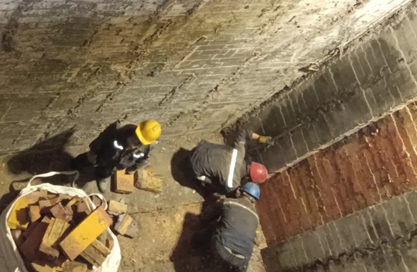 七月中旬,陽極分公司焙燒車間在對焙燒爐日常維護中發(fā)現(xiàn),2#焙燒爐45#爐室5火道爐墻變形較為嚴重,經(jīng)現(xiàn)場勘查、測量,確定該爐室火道墻已不滿足生產(chǎn)條件,為避免出現(xiàn)生產(chǎn)質量波動和事故隱患,車間決定立即對該火道墻進行拆除重建。 為減少火道墻拆除重建工作對生產(chǎn)任務的影響,車間在保證安全的前提下合理優(yōu)化生產(chǎn)任務,并安排安全專責負責作業(yè)全過程監(jiān)督管理,綜合班班長負責有限空間作業(yè)票辦理、現(xiàn)場監(jiān)護,綜合班具體負責實施,生產(chǎn)運行班協(xié)助配合。作業(yè)前嚴格按照有限空間作業(yè)“先通風、再檢測、后作業(yè)”的流程進行,負責人現(xiàn)場協(xié)調指揮,作業(yè)人員克服40多度悶熱環(huán)境,服從管理、規(guī)范作業(yè),經(jīng)過為期5天的加班加點工作,終于按計劃如期完成焙燒爐火道墻拆除重建工作。目前,該爐室已投入生產(chǎn),經(jīng)過檢驗觀察,整體運行狀態(tài)良好。 本次焙燒爐火道墻拆除重建工作順利完成,檢驗了火道墻拆除重建工作方案的實操性和可行性,為車間多工種配合交叉安全作業(yè)積累了寶貴經(jīng)驗,有效保證了生產(chǎn)任務平穩(wěn)有序完成。 |