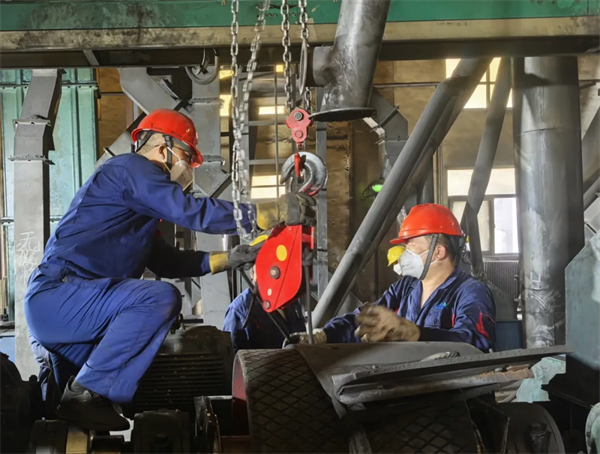 陽極分公司成型車間配料斗提皮帶長(zhǎng)70余米,隨著使用周期臨近,磨損、老化現(xiàn)象逐漸突顯,使用性能顯著降低。為保證生產(chǎn)安全穩(wěn)定,防止設(shè)備安全隱患發(fā)生,車間決定利用停產(chǎn)檢修間隙對(duì)其進(jìn)行更換。 此次作業(yè),車間總結(jié)前期超長(zhǎng)皮帶更換作業(yè)的工作經(jīng)驗(yàn),提前優(yōu)化完善更換方案,制定應(yīng)急預(yù)案,確保每一個(gè)更換步驟都能達(dá)到安全精準(zhǔn)。隨著斗提料斗拆卸完畢,更換工作隨即展開,作業(yè)人員緊密配合、分工明確,嚴(yán)格按照方案要求和操作規(guī)程進(jìn)行,一組人員負(fù)責(zé)拆卸舊皮帶,另一組人員搬運(yùn)安裝新皮帶,大家通過手動(dòng)盤車方式,一米一米將新舊皮帶進(jìn)行交替更換,經(jīng)過為期兩天的持續(xù)工作,隨著皮帶接頭卡扣成功連接,此次更換工作順利完成。隨后車間組織生產(chǎn)班組對(duì)138個(gè)料斗進(jìn)行重新安裝緊固,對(duì)新斗提進(jìn)行檢查調(diào)試,目前已安全投運(yùn)。 本次配料斗提皮帶更換工作,及時(shí)消除了設(shè)備安全隱患,減輕了職工勞動(dòng)強(qiáng)度,保證了車間生產(chǎn)連續(xù)性和穩(wěn)定性,為分公司安全高效生產(chǎn)提供了有力地設(shè)備支撐。  |