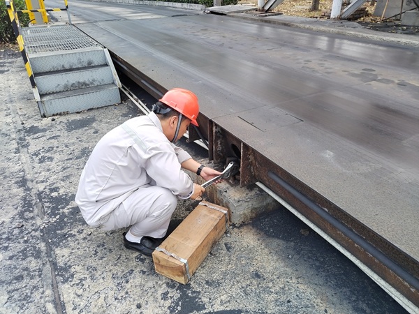 大宗原材料進出場的精準計量是企業(yè)生產(chǎn)平穩(wěn)運行的關鍵環(huán)節(jié)。7月18日14時20分,質檢計量中心接到緊急報告:陽極磅房磅秤突發(fā)傳感器傾斜、秤體移位故障,導致石油焦運輸車輛無法正常過磅。時值高溫保供關鍵期,若不及時排除故障,將直接影響物料流轉效率,甚至延誤生產(chǎn)進度。 靠前指揮強部署 爭分奪秒搶進度 故障就是命令!中心領導班子迅速反應,第一時間趕赴現(xiàn)場指揮調(diào)度,并抽調(diào)技術骨干成立搶修小組。搶修人員冒著高溫,對磅秤進行全面排查,迅速鎖定故障原因——由于頻繁使用、且持續(xù)高溫導致磅秤限位間隙縮小,車輛在磅秤上急停致使磅秤傳感器偏移、固定限位松動,造成磅秤部分限位失靈。“必須在2小時內(nèi)恢復運行!”中心領導下達硬性指令。在安全管理人員的全程監(jiān)護下,搶修人員迅速制定搶修方案:利用千斤頂穩(wěn)固磅秤中心,多人協(xié)同撬動調(diào)整位移端,重新校準傳感器并精準調(diào)試數(shù)據(jù)。 協(xié)同奮戰(zhàn)保運行 精準調(diào)試穩(wěn)計量 經(jīng)過1小時20分鐘的緊張作業(yè),15時50分,磅秤計量數(shù)據(jù)恢復穩(wěn)定。經(jīng)反復校驗,誤差值嚴格控制在國家標準范圍內(nèi)。等候的運輸車輛隨即有序過磅,生產(chǎn)恢復正常運轉。此次搶修比原定預案提前40分鐘完成,最大限度地降低了故障對生產(chǎn)的影響。 |