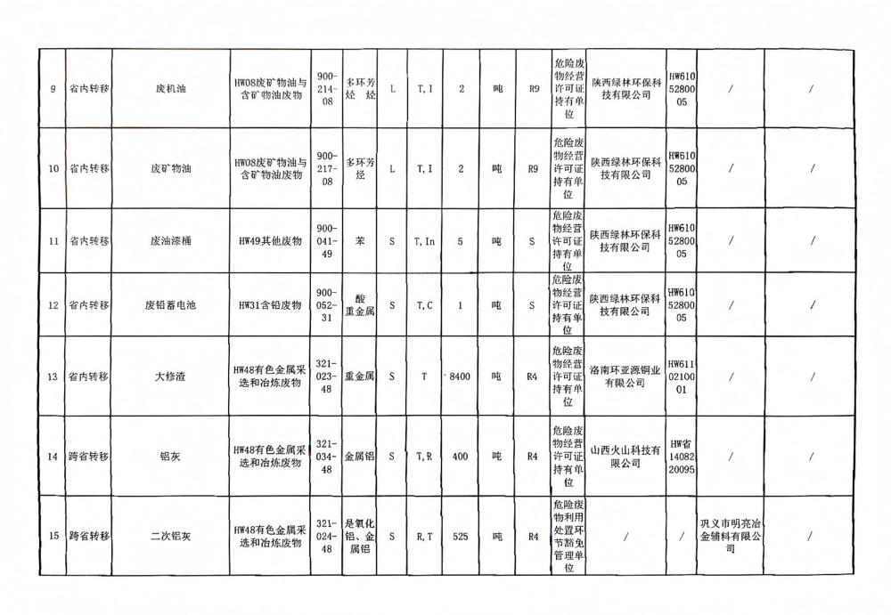 2025年危險廢物管理計劃(鋁鎂合金分公司)
