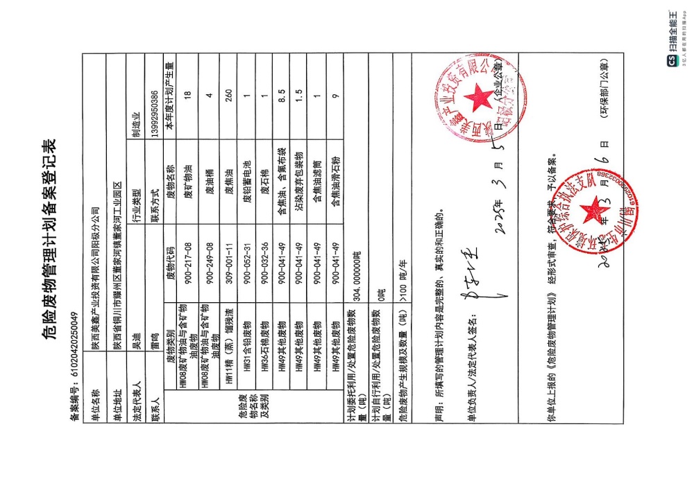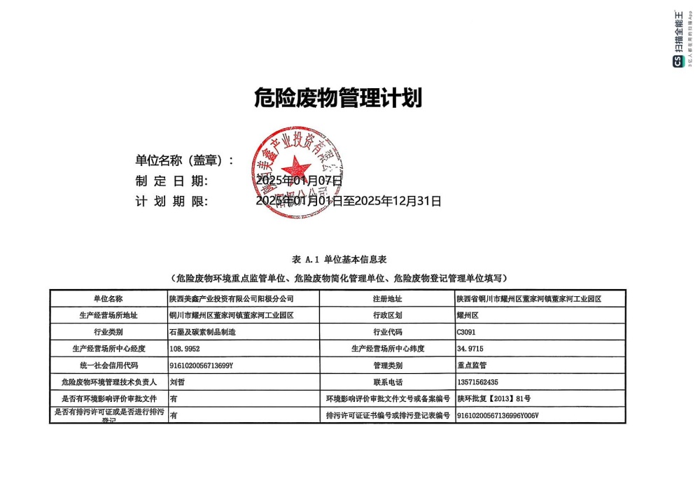 2025年危險(xiǎn)廢物管理計(jì)劃(陽(yáng)極分公司)
