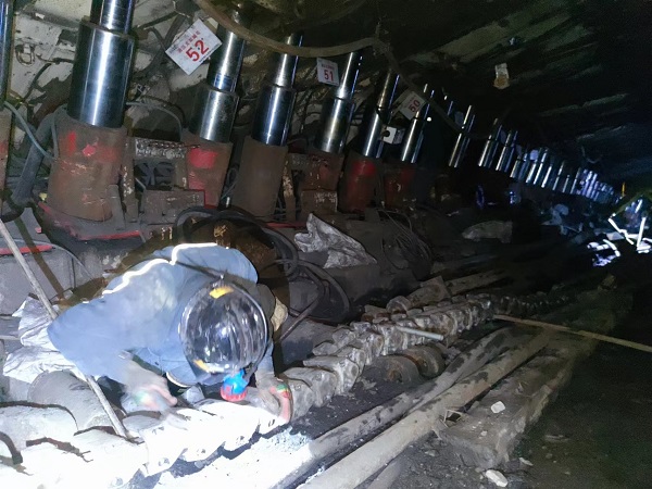 礦業(yè)公司冶煤礦1302工作面從2022年7月份開始生產(chǎn)到今年5月份停產(chǎn),期間共生產(chǎn)原煤110萬噸。從今年6月份開始,1302工作面經(jīng)歷末采上網(wǎng)、拆除運輸,9月8日最后一臺支架升井,9月18日巷道噴漿密閉。至此,1302工作面回撤工作順利完成。 為確保1302工作面安全回撤,該礦成立工作面回撤工作領(lǐng)導(dǎo)小組,未雨綢繆,超前規(guī)劃,在工作面停采前創(chuàng)造撤面條件,制訂回撤前擴幫及兩順槽超前維護等工作面末采措施;提前規(guī)劃回撤路線,確保大件運輸安全。同時,加強頂板支護,在壓力較大地段加大支護密度,以保證端頭支護平安牢靠,對兩順槽局部地段壓力較大局域,采用單體柱梁支護結(jié)合,從而達(dá)到設(shè)備回收要求。在設(shè)備運輸過程中車輛嚴(yán)格按照指定路線行駛、指定地點會車卸車,確保車輛暢通。在回撤過程中安排專人現(xiàn)場跟班盯靠巡查,及時排查處理現(xiàn)場存在的隱患,規(guī)范職工的操作行為,確保按章作業(yè)。每天召開一次協(xié)調(diào)會,對當(dāng)天存在的頂板、設(shè)備裝封車、支護、運輸、地面堆放等問題進(jìn)行分析,對需要協(xié)調(diào)解決的各種問題制定解決方案。 此次工作面回撤,礦業(yè)公司和承托方干部職工協(xié)調(diào)一致,配合默契,黨政領(lǐng)導(dǎo)帶頭奮戰(zhàn)一線,接連克服了液壓支架抽架、吊裝難度大、工作面出水導(dǎo)致運輸困難、運輸巷道坡度、彎度大等困難,為采煤工作面正常接續(xù)提供了有力保障,確保工作面回撤和原煤生產(chǎn)“兩推進(jìn)”“兩不誤”。  |